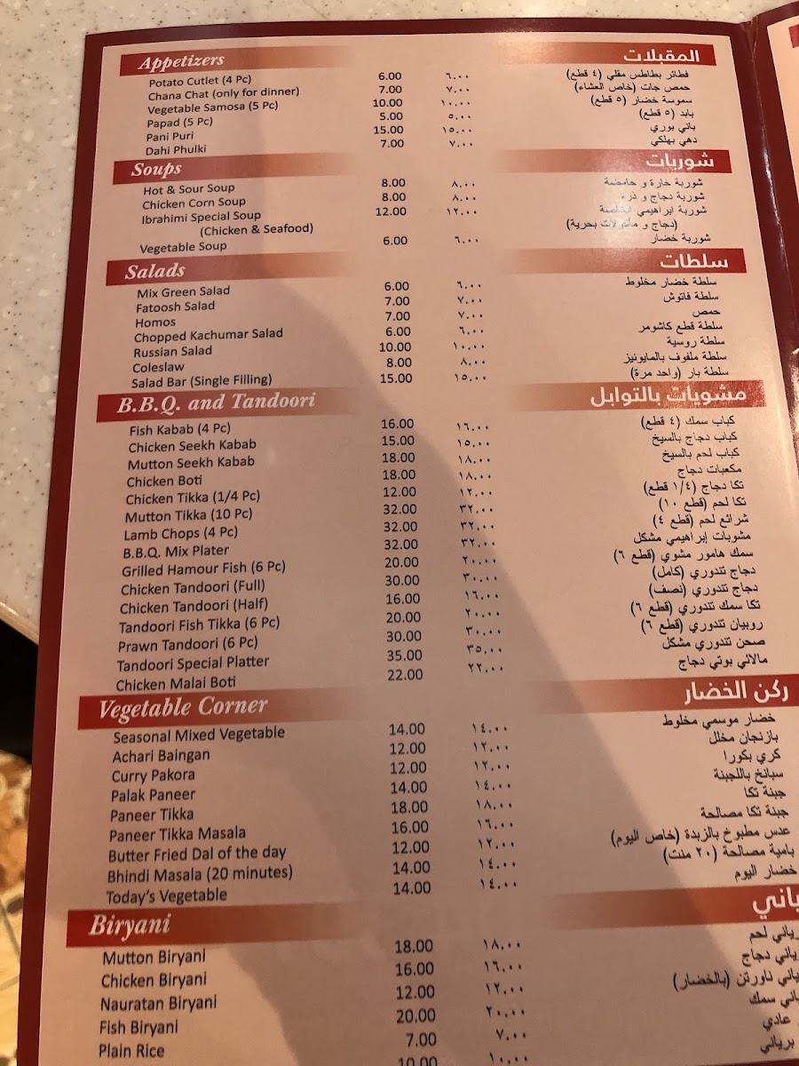 The menu at Al Ibrahimi Palace Restaurant in Karama reflects a comforting and authentic Pakistani dining experience, offering a balanced mix of hearty main dishes, fresh salads, and inviting desserts. It features classic favorites like rich mutton biryani, succulent barbecue options such as quail tikka, and warming soups including chicken corn soup—perfect for a relaxed lunch or a cozy dinner.