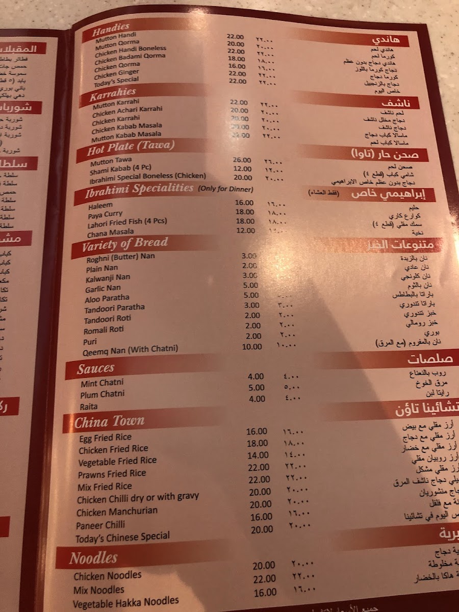 Al Ibrahimi Palace Restaurant- Karama Menu